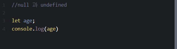 undefined 변수를 선언하고 아무것도 할당 하지 않으면 undefined 가 뜬다.