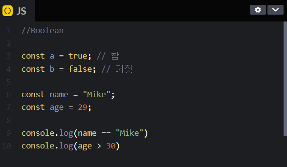 Not a Number Boolean은 논리적인 요소를 나타내고 true 참 , false 거짓 이렇게 2가지 가 있다.