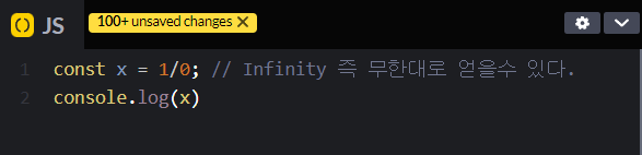 사칙연산 숫자를 0 으로 나눌시 무한대로 나눌수 있다.