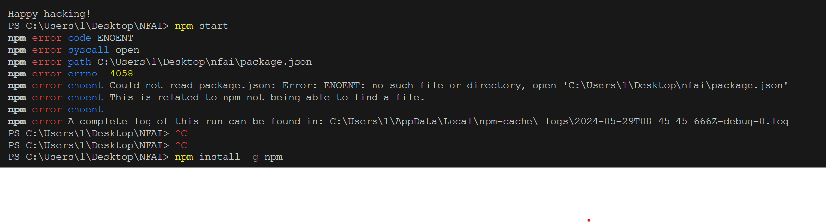 npm npm 에러는 처음이라 무척 당황 스러웠다.....뭐지 하고 이것저것 다 찾아 보고 하는데도